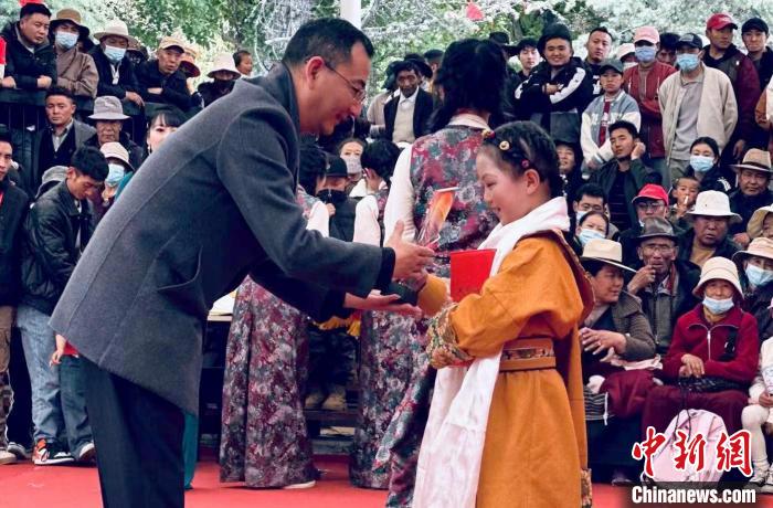 拉薩市堆龍德慶區(qū)第四小學(xué)四年級(jí)學(xué)生貢尕尼瑪說:“很開心今天能夠站在這里跟大家講述我的祖父跟隨十八軍進(jìn)藏的故事,我覺得很驕傲也很自豪”。