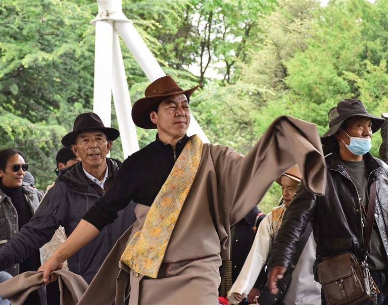 “能在杭州絲綢城街頭看到我們那曲的‘果卓’,一股自豪感從心里油然而生?!痹谡憬贾葑x研的旦增松繞說,鍋莊舞已然成為大家了解西藏優(yōu)秀傳統(tǒng)文化的一個途徑,也因其親民的舞蹈形式深受大家的喜愛。圍成一圈跳上一段鍋莊,沒過多久,人與人的距離便近了起來。