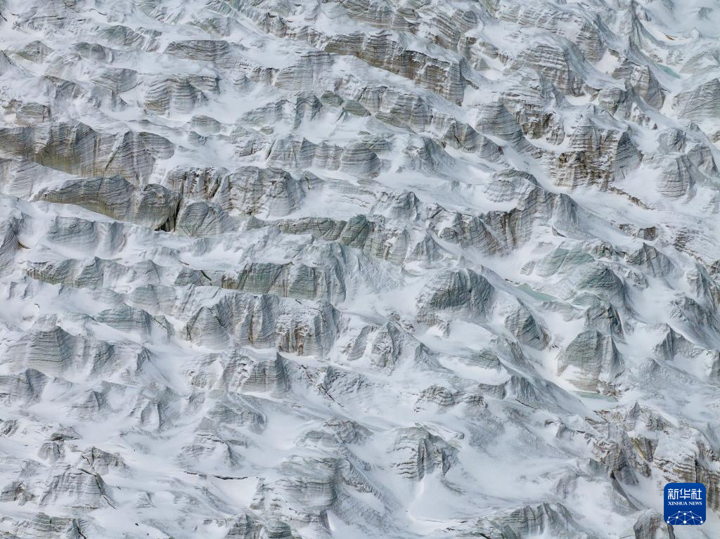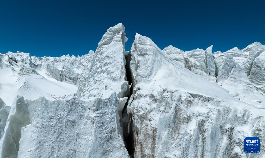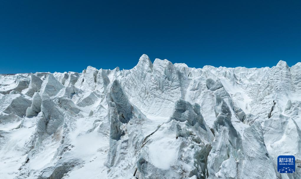 藏色崗日冰川冰塔林(無人機照片,5月11日攝)。新華社記者 姜帆 攝