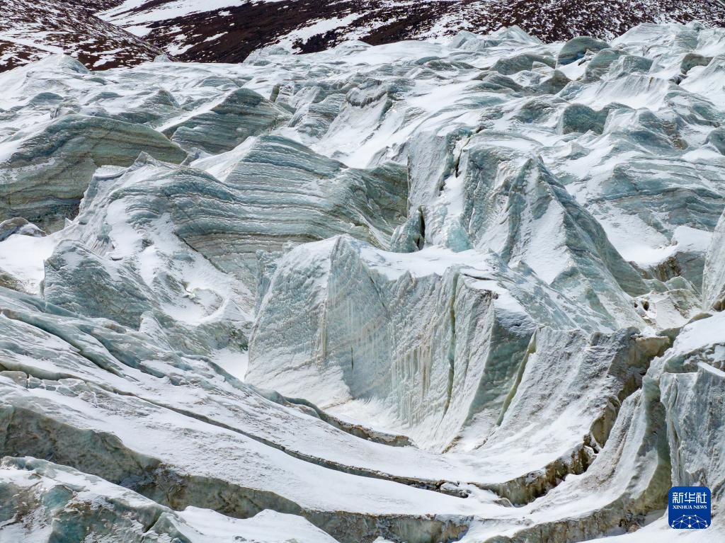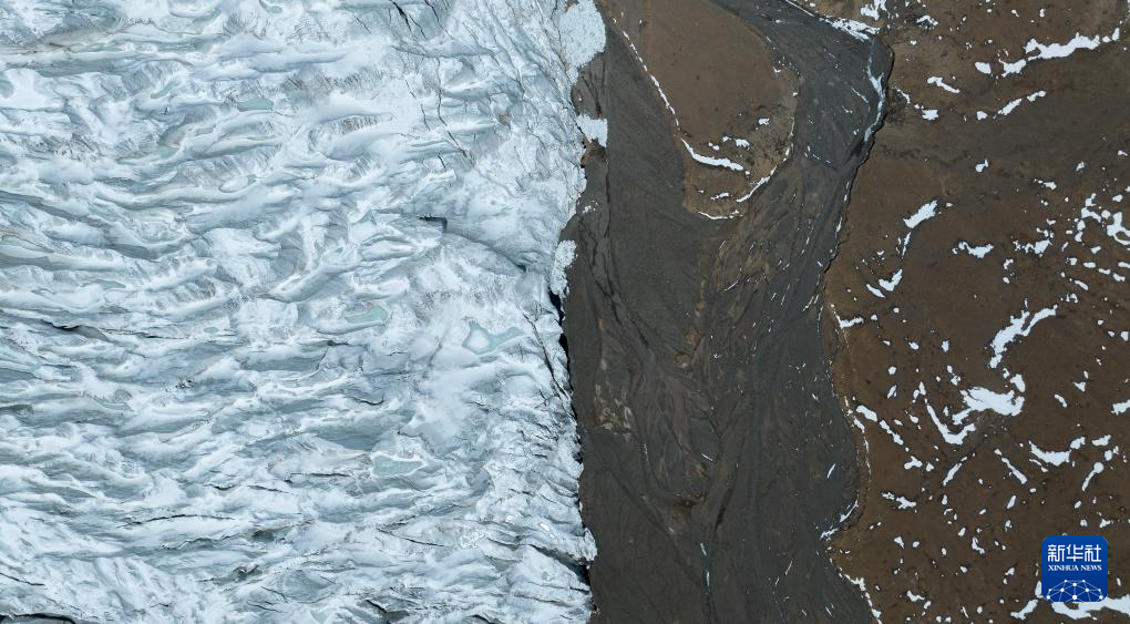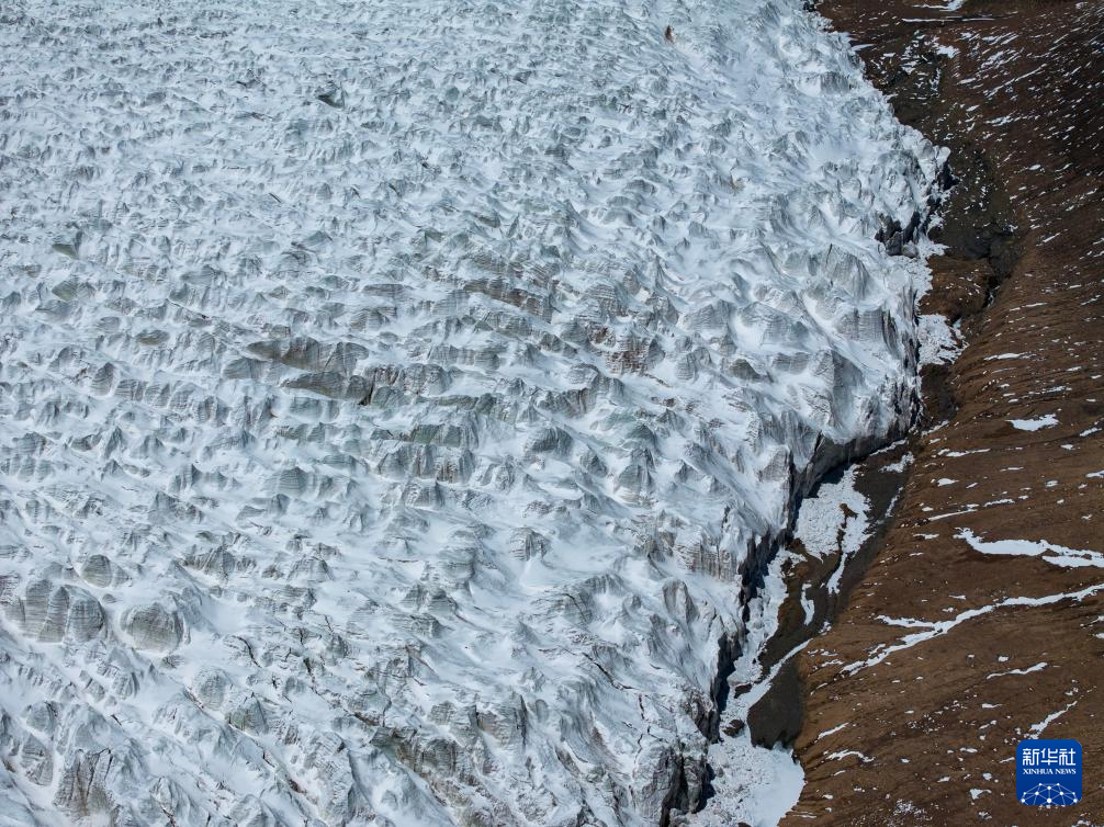 藏色崗日冰川的冰舌(無人機照片,5月11日攝)。新華社記者 姜帆 攝