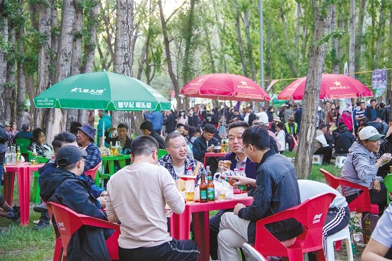 在啤酒林卡促銷活動(dòng)上,市民在戶外盡情享受盛夏。記者 扎西頓珠 旦增嘎瓦 攝