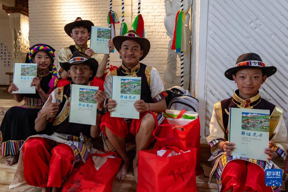 6月5日,拉薩市特殊教育學(xué)校的孩子們?cè)谛聲?shū)發(fā)布現(xiàn)場(chǎng)表演舞蹈。新華社發(fā)(旦增努布 攝)