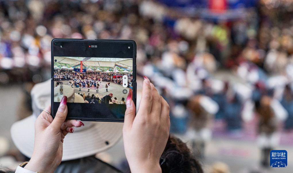 當(dāng)日,第二屆拉薩鍋莊舞大賽(決賽)在布達(dá)拉宮腳下的宗角祿康公園舉辦。經(jīng)過激烈角逐脫穎而出的12支隊伍為市民和游客奉獻(xiàn)了一場歡快的視聽盛宴。新華社記者 黃智琪 攝