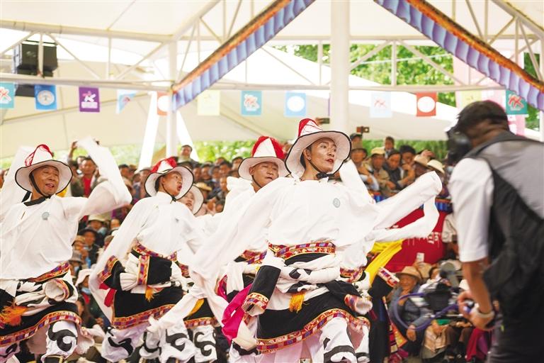 從傳統(tǒng)民族舞到現(xiàn)代創(chuàng)新舞,每支舞蹈都蘊(yùn)含著藏族人民對(duì)家鄉(xiāng)的熱愛和對(duì)美好生活的向往。比賽中,參賽人員身著特色民族服飾,伴隨著優(yōu)美激昂的旋律,踩著歡快的節(jié)拍,以飽滿的熱情和精湛的舞技,演繹了一場精彩而富有特色地域文化的廣場舞盛宴,凸顯了非物質(zhì)文化遺產(chǎn)的傳承創(chuàng)新發(fā)展。