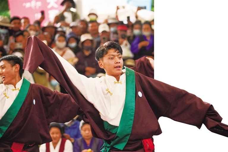 鍋莊舞又稱為“果卓”,藏語意為圓圈歌舞,2006年鍋莊舞列入第一批中國國家級(jí)非物質(zhì)文化遺產(chǎn)名錄。在拉薩,鍋莊舞是當(dāng)?shù)匦蓍e的一大特色。雖然決賽晚上6點(diǎn)才開始,但絲毫不影響市民群眾對(duì)鍋莊舞的熱愛,現(xiàn)場座無虛席,人潮涌動(dòng),不時(shí)爆發(fā)出陣陣掌聲、吶喊聲,將比賽氣氛推向高潮。