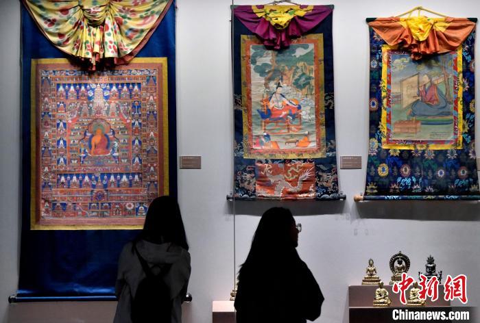 隨著西藏旅游旺季的到來(lái),“高原城市會(huì)客廳”西藏博物館也迎來(lái)參觀熱潮。圖為6月19日,觀眾正在欣賞展陳的唐卡。中新社記者 李林 攝