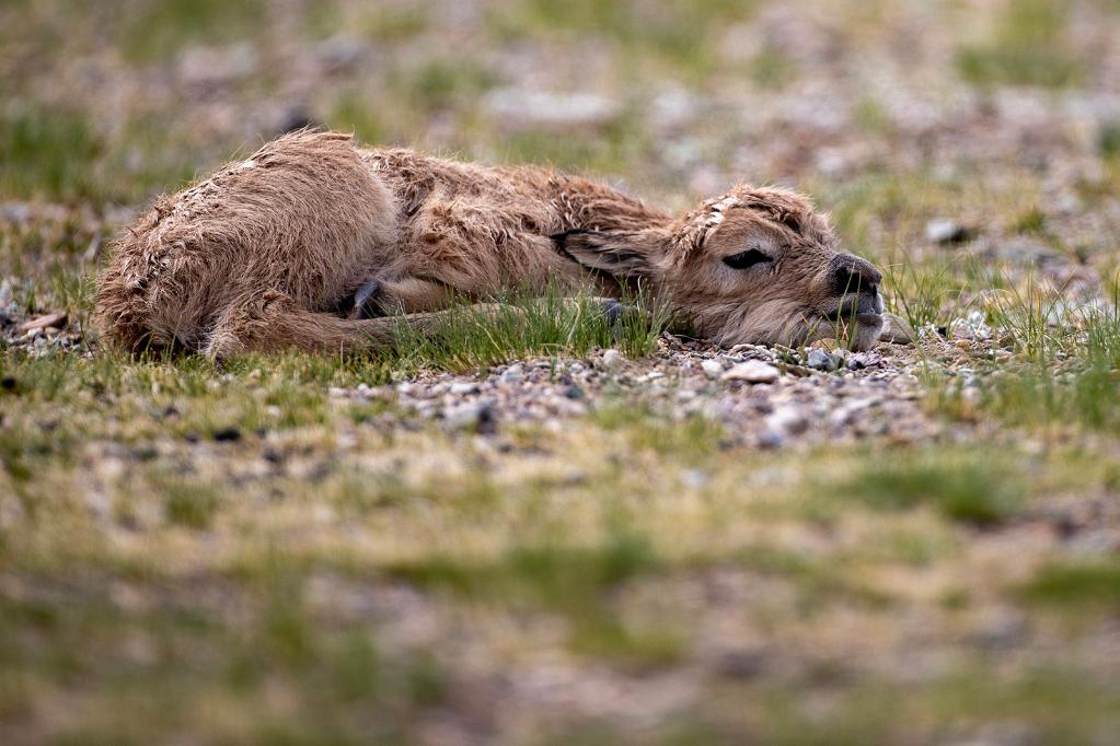 2024年6月17日,羌塘國(guó)家級(jí)自然保護(hù)區(qū)境內(nèi)的西藏那曲市申扎縣買(mǎi)巴鄉(xiāng)魯確塘草原上一只剛出生不久的小藏羚羊。