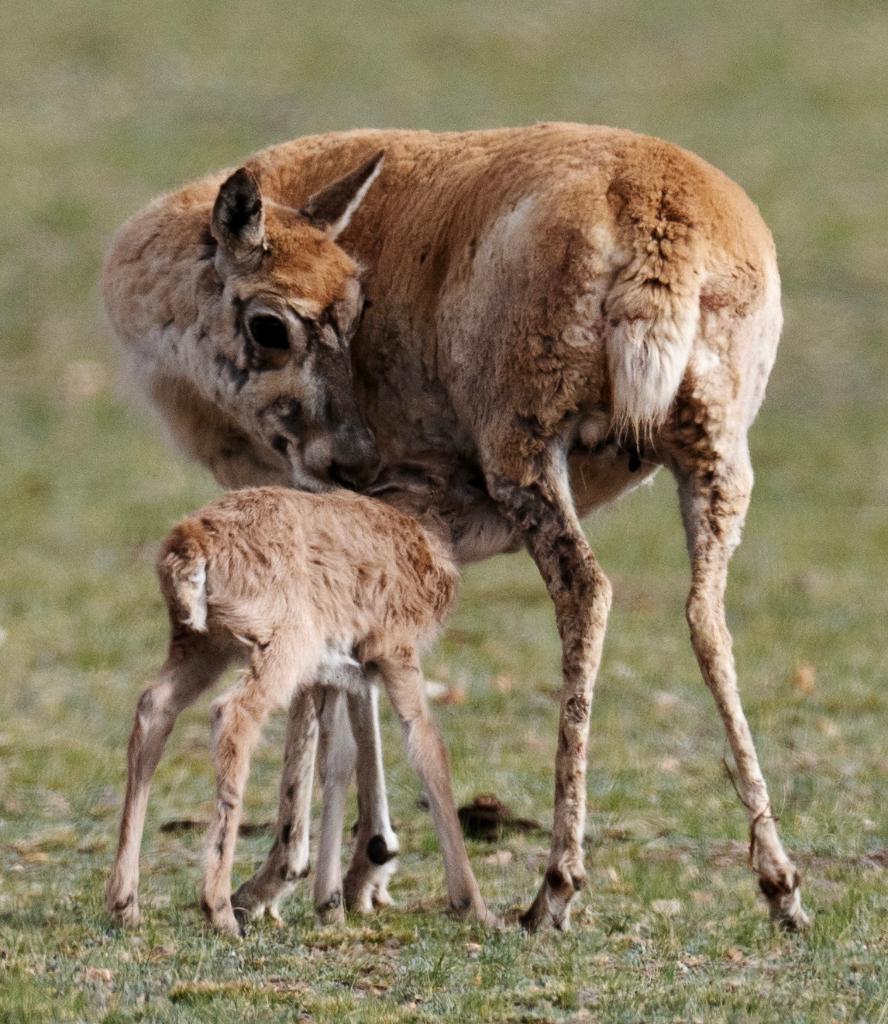 2024年6月17日,羌塘國(guó)家級(jí)自然保護(hù)區(qū)境內(nèi)的西藏那曲市申扎縣買(mǎi)巴鄉(xiāng)魯確塘草原上一只剛出生不久的小藏羚羊在吃奶。