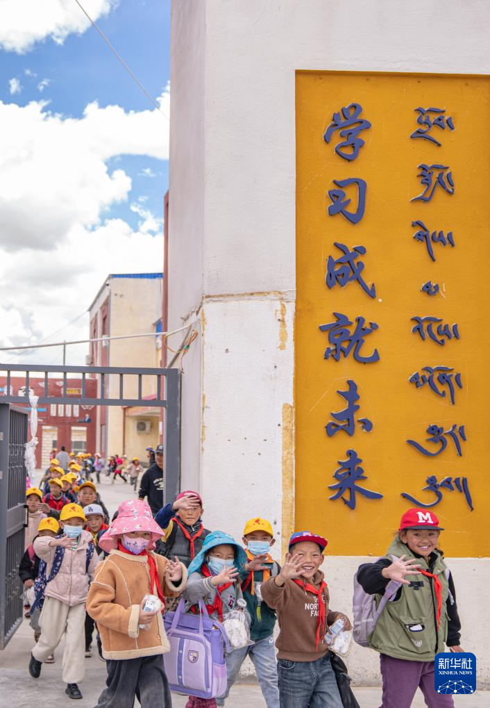 班戈縣中石化小學(xué)學(xué)生放學(xué)后走出校門(6月22日攝)。新華社記者 丁增尼達(dá) 攝