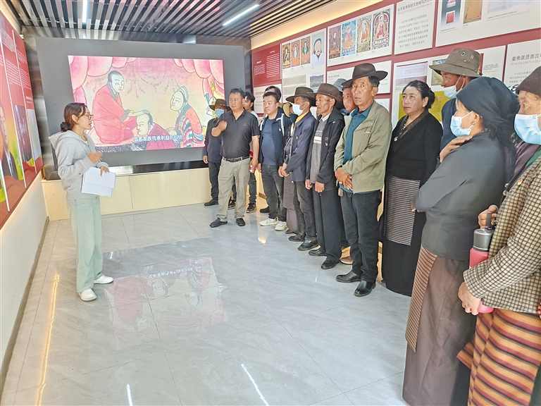 謝軍成和柏林村黨員一起參觀民族團結(jié)展覽。