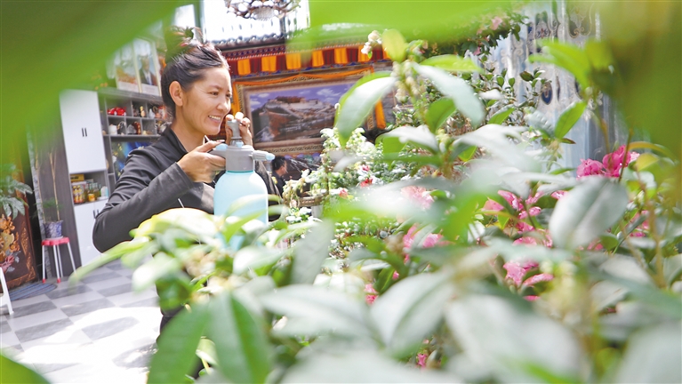達娃卓嘎在澆花。