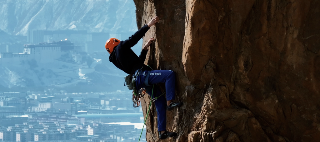 穆澤潤(rùn)在拉薩的自然巖壁上攀巖