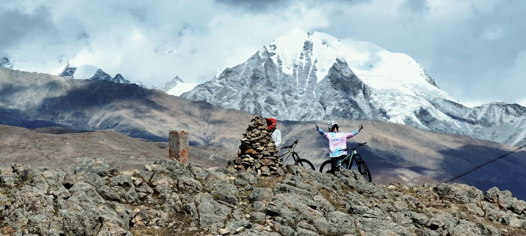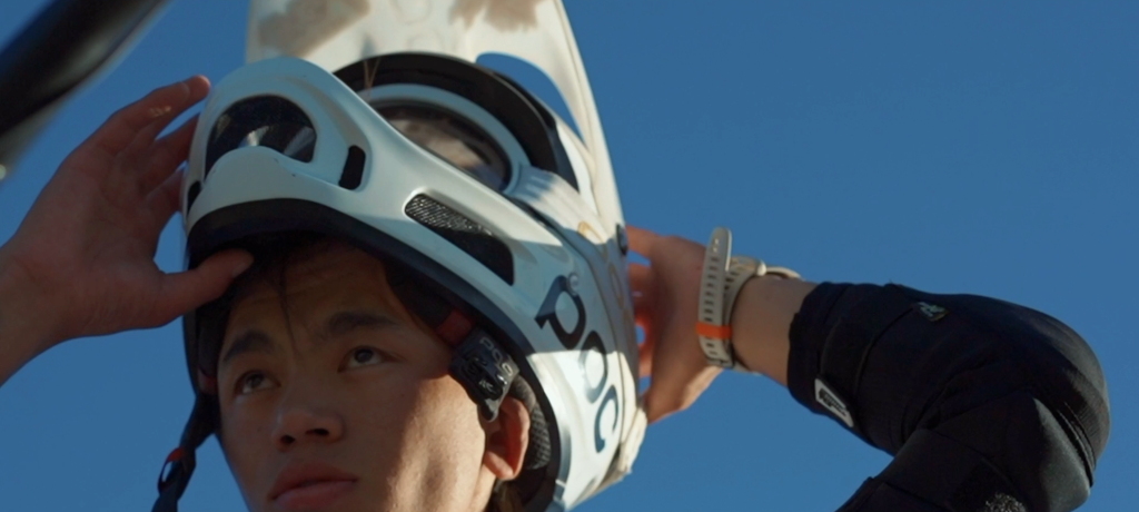旦增吉美戴上頭盔準(zhǔn)備騎車(chē)速降