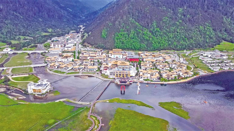廣東省對(duì)口支援建設(shè)的巴宜區(qū)魯朗國(guó)際旅游小鎮(zhèn)鳥瞰圖(局部)。
