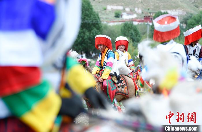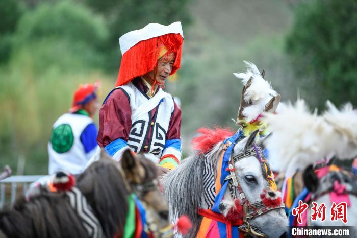 7月21日,西藏自治區(qū)拉薩市堆龍德慶區(qū)馬鎮(zhèn)朗巴村民眾賽馬歡度“望果節(jié)”?!巴?jié)”民俗已有1500多年的歷史,是國(guó)家級(jí)非物質(zhì)文化遺產(chǎn)。圖為騎手準(zhǔn)備比賽。中新社記者 貢嘎來(lái)松 攝