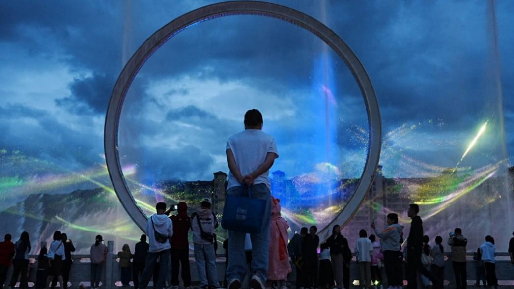 日落西山,微風輕撫,林芝市工布公園里熱鬧又悠閑。絡繹不絕的游客和市民前來觀看夢幻水秀表演,絢麗多彩的燈光秀引得觀眾發(fā)出陣陣驚呼。