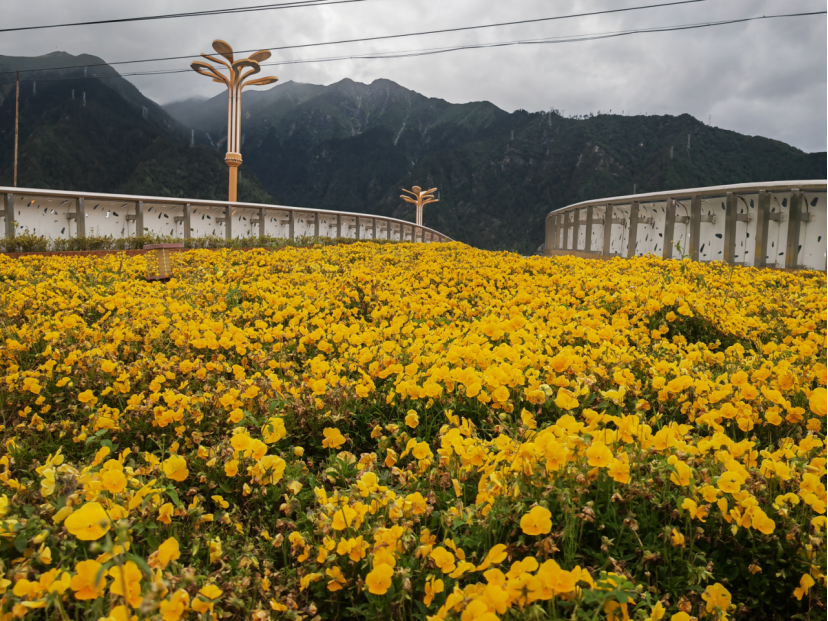 公園橋梁上的花叢