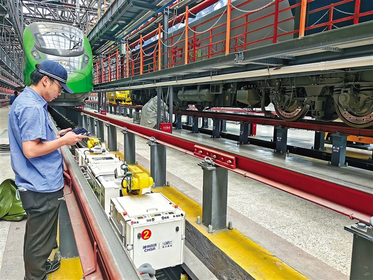 中國鐵路青藏集團(tuán)有限公司格爾木機(jī)務(wù)段拉薩機(jī)輛整備中心動(dòng)集檢修庫是動(dòng)車檢修基地,擔(dān)負(fù)著動(dòng)車組的日常檢修、定期修及專項(xiàng)修任務(wù)。在暑運(yùn)客流高峰期間,三組動(dòng)車組全部上線運(yùn)行,該段加大對(duì)動(dòng)車組入庫檢修整備力度,采用智能檢測(cè)機(jī)器人對(duì)高原動(dòng)集軌旁、車底部進(jìn)行自動(dòng)檢測(cè)、分析及診斷,并對(duì)相關(guān)部位零部件外觀故障進(jìn)行識(shí)別和報(bào)警,實(shí)現(xiàn)了“人檢”向“機(jī)檢”的轉(zhuǎn)變。