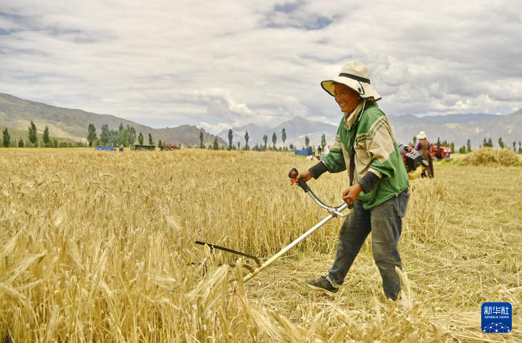 近日,西藏山南市扎囊縣迎來青稞豐收季,人們忙著收割青稞,感受豐收的喜悅。