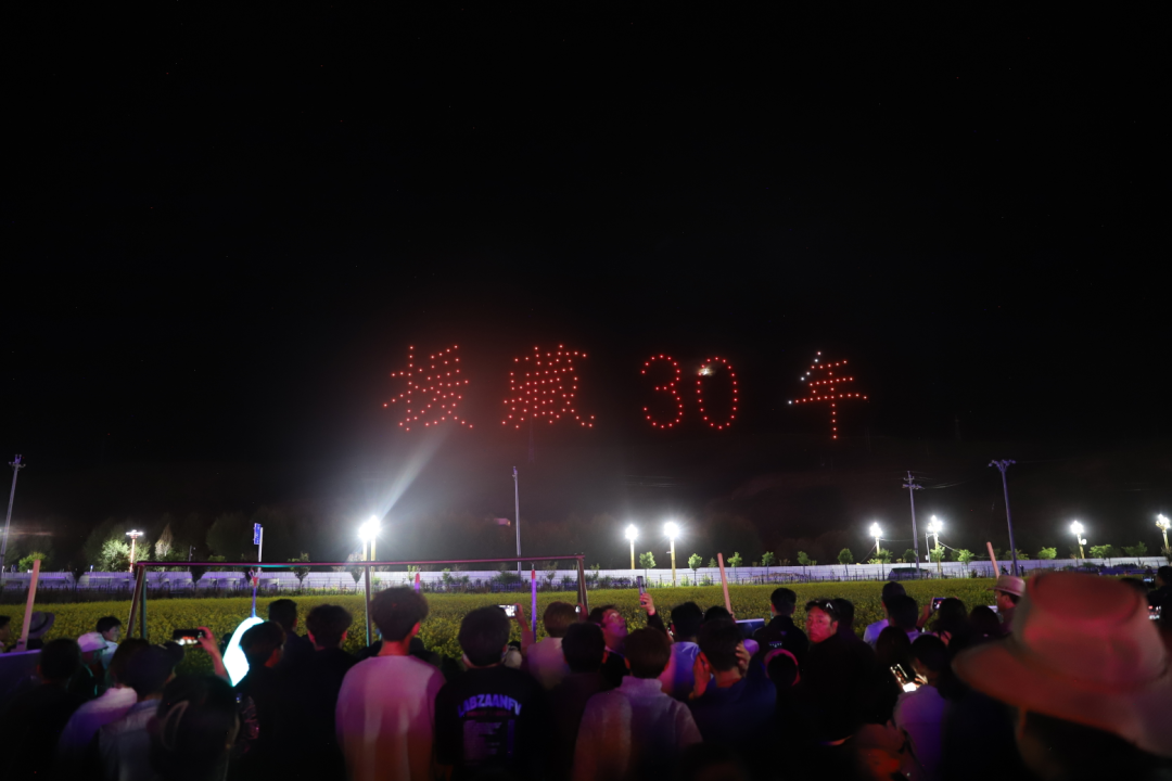 伴隨著篝火晚會的進行,200架無人機騰空而起,通過傳奇昌都、團結(jié)發(fā)展、產(chǎn)業(yè)興旺3個篇章舞動出一場流光溢彩的視覺盛宴,以極具時尚先鋒的方式向大家推介傳奇昌都,推介奇境貢覺。