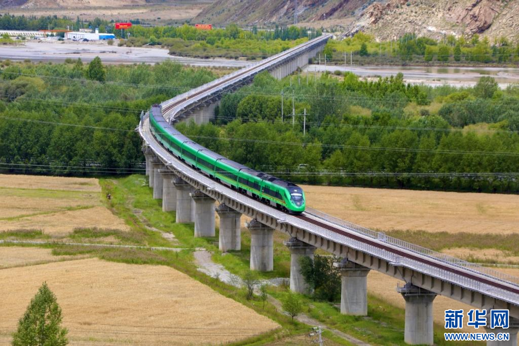 復(fù)興號(hào)動(dòng)車(chē)組穿過(guò)拉日鐵路拉薩河大橋。新華社發(fā)(馬生明 攝)