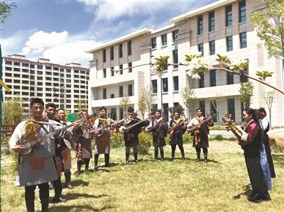 拉薩師范高等??茖W(xué)校學(xué)生在校園演奏民樂。