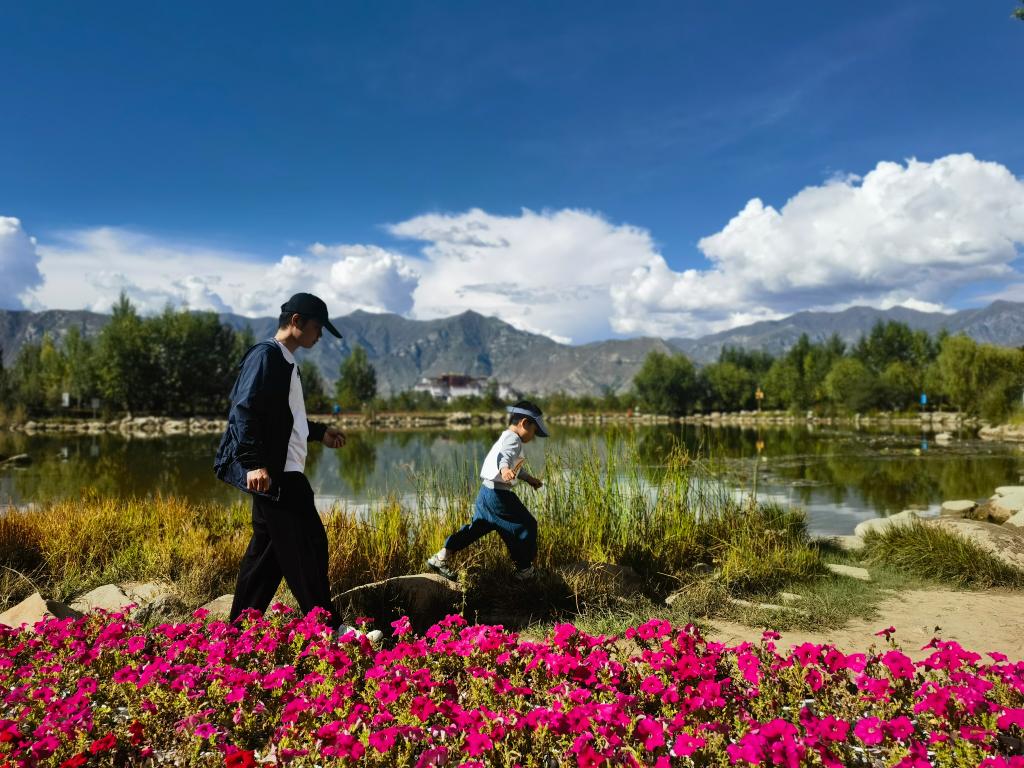 2024年9月1日,游客在拉薩南山公園游玩。新華社記者舒靜 攝