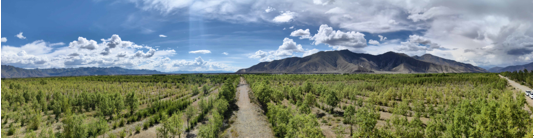 二十多年前的南木林縣惡劣的自然環(huán)境嚴重影響了全縣各族群眾生產生活。2002年,山東援藏干部抵達南木林縣,面對周圍的一片光禿,大力開展植樹造林,誓把高原變綠洲。從那時起,一批批山東濰坊援藏干部人才前赴后繼,以一茬接著一茬干、一張藍圖繪到底的毅力決心建成了世界屋脊上的“塞罕壩”。讓綠水青山與冰天雪地相伴,讓綠色生態(tài)與民生福祉相連,時間不語,光影見證。