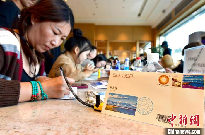 圖為游客在購買《美麗中國(四)》郵票、首日封、紀念封等產品后,現場填寫。李林 攝