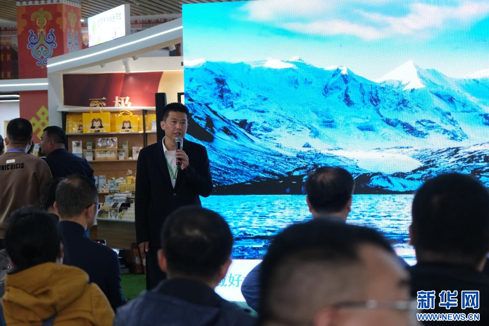 西藏供銷集團相關(guān)負(fù)責(zé)人正在向參會企業(yè)推介西藏特色產(chǎn)品。(西藏供銷集團供圖)