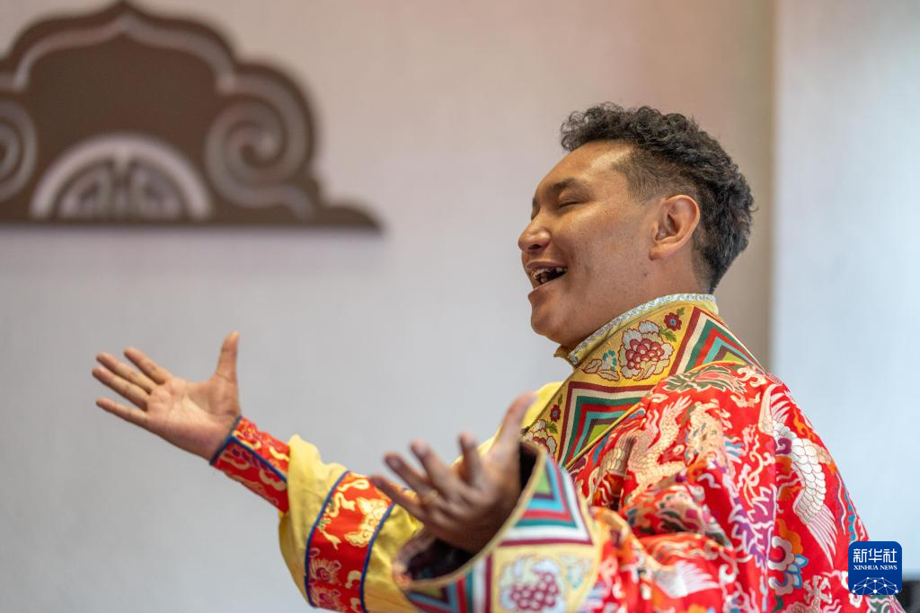 9月13日,格薩爾說唱藝人斯塔多吉在發(fā)布儀式現場表演格薩爾說唱。新華社記者 旦增尼瑪曲珠 攝