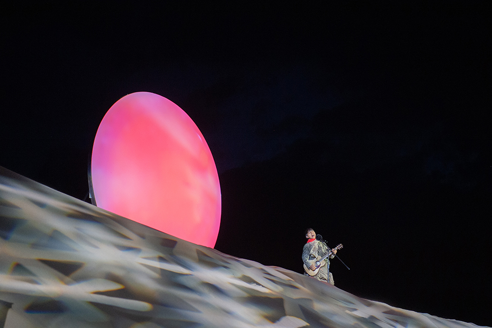 西藏山南首屆“高原沙丘青年藝術(shù)季”音樂會現(xiàn)場(無人機(jī)照片,9月15日攝)。新華網(wǎng) 旦增努布 攝