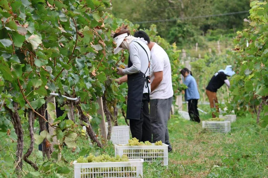 西藏芒康縣納西民族鄉(xiāng)葡萄成熟,農(nóng)民正在采摘。(曲措 攝)