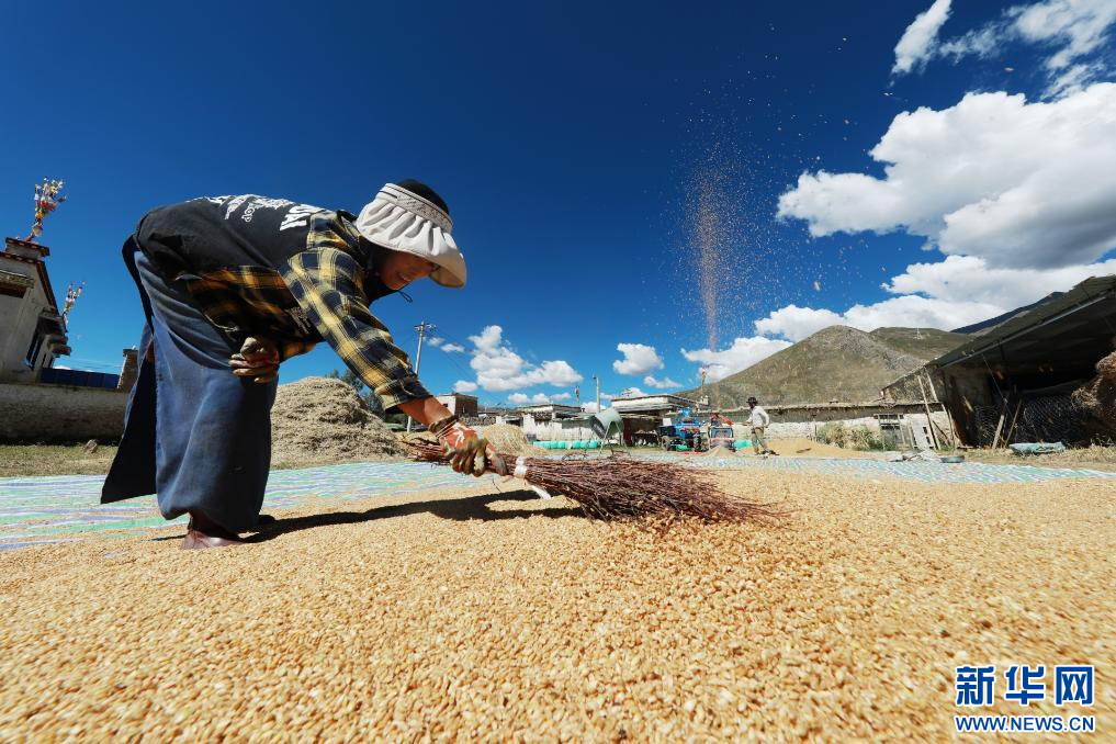 金秋九月,風(fēng)吹麥浪、穗粒飽滿。連日來(lái),在拉薩市墨竹工卡縣金黃色的農(nóng)田里,處處可見(jiàn)勤勞的農(nóng)民們忙碌著,收割小油菜和青稞,晾曬、搬運(yùn)、儲(chǔ)藏,確保糧食顆粒歸倉(cāng)。