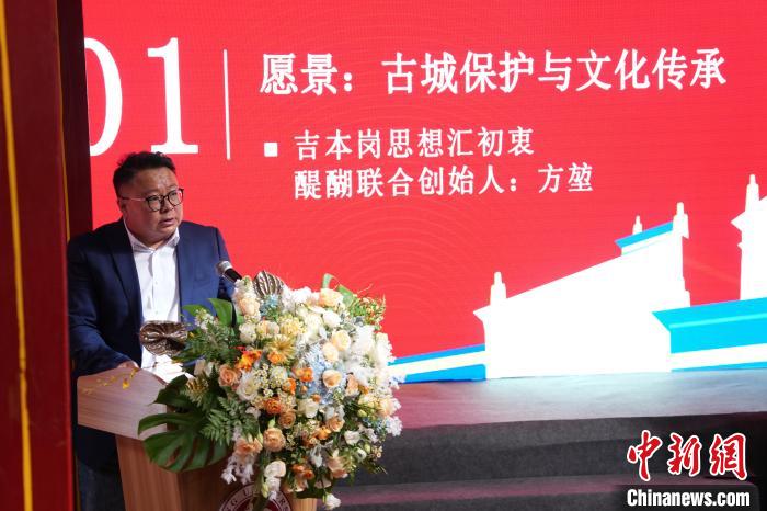 吉本崗藝術中心負責人方堃在活動中演講。記者 崔楠 攝
