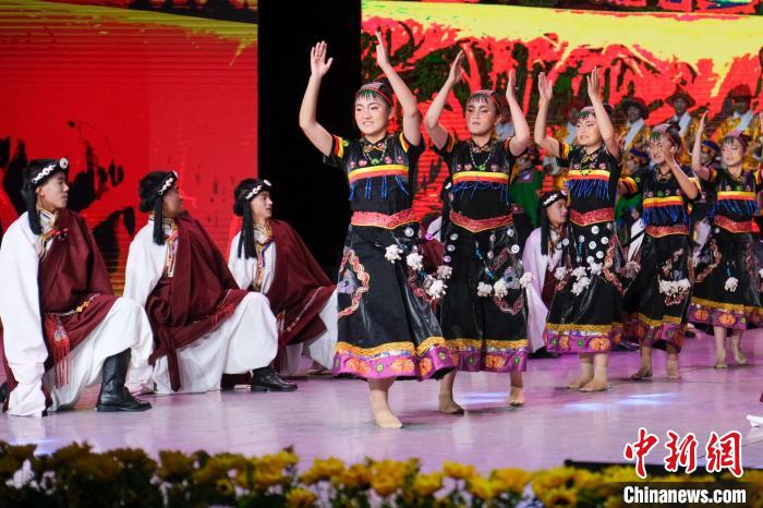 9月23日晚,西藏自治區(qū)首屆殘疾人文藝匯演在拉薩開(kāi)演,來(lái)自西藏各市地的聽(tīng)障、視障以及肢體殘疾群體紛紛登上舞臺(tái)一展風(fēng)姿,舞蹈、歌曲、手語(yǔ)等節(jié)目輪番上陣。圖為當(dāng)晚演出現(xiàn)場(chǎng),拉薩特校學(xué)生卓瑪拉姆作為領(lǐng)舞展現(xiàn)動(dòng)人舞姿。記者 江飛波 攝
