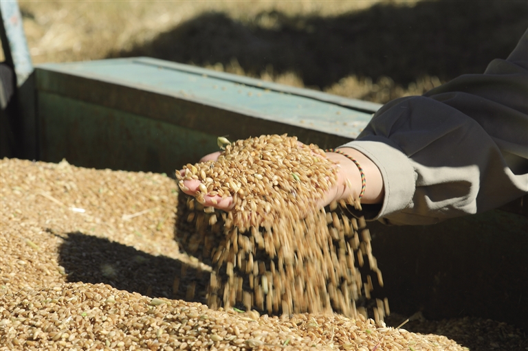 “我家共有92畝多的農(nóng)田,家里有三個勞力,我負責秋收,其余兩個外出務工,以前我們家秋收工作需要一個月多的時間,現(xiàn)在農(nóng)業(yè)機械化了,再也不用擔心秋收工作,聽說今年賣良種每斤有0.3元的補貼,準備把自家10000斤良種賣掉,預計今年有56000多元的收入?!闭诎徇\青稞粒的村民普瓊高興地說道。