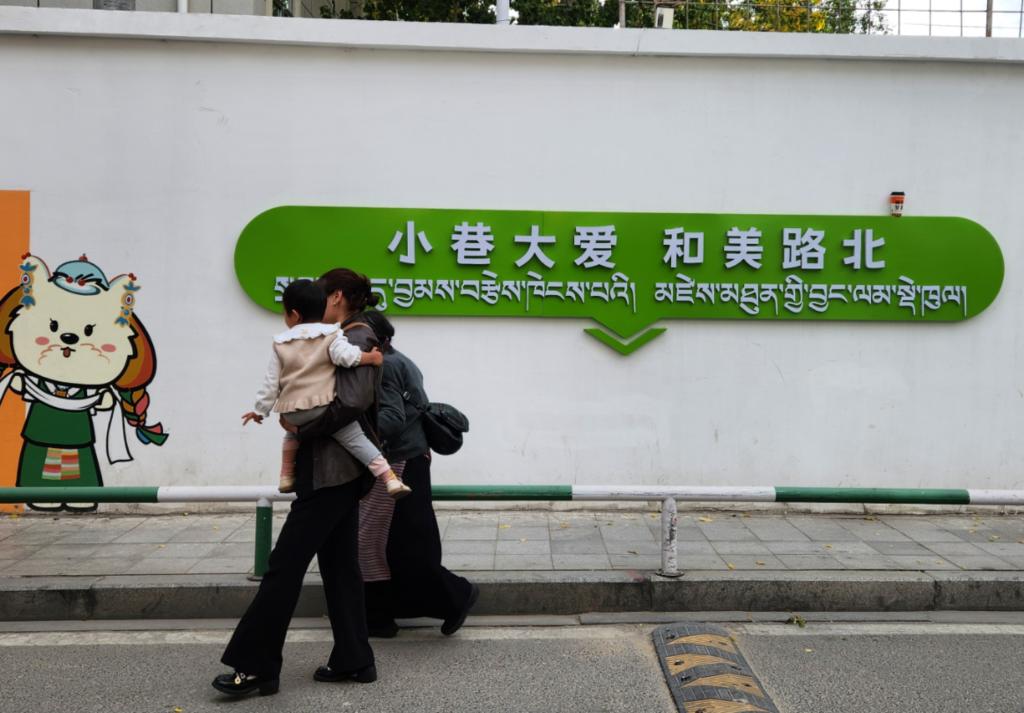 配合路政部門把洽瑪崗路改為單行道,讓街道靜下來;協(xié)同三大運(yùn)營商,把街上縱橫交錯(cuò)的“飛線”收進(jìn)沿街橋架,還行人一片藍(lán)天;對接專業(yè)設(shè)計(jì)團(tuán)隊(duì),以本地犬種拉薩阿普索犬設(shè)計(jì)社區(qū)IP形象“嘎嘎”(意為快樂),街角的墻繪、樹上的引導(dǎo)牌、商戶的門臉上都能看到這只可愛的小狗……社工旦增晉美對社區(qū)的變化如數(shù)家珍。