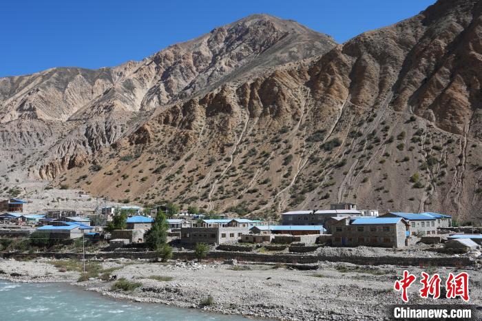 10月2日,從中國西藏普蘭口岸遠眺一河之隔的尼泊爾胡木拉縣油薩村。中新社記者 崔楠 攝