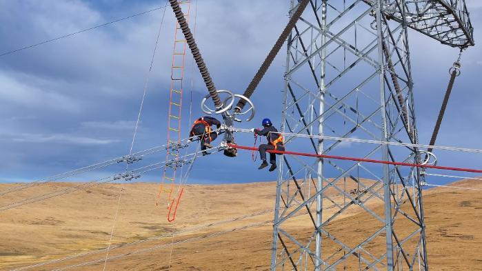 9月的林周,高原的陽光刺得睜不開眼。在走線現(xiàn)場,小組負(fù)責(zé)人扎西頓珠指揮兩名工作人員上塔進(jìn)行懸掛接地線,隨后,兩名走線人員頂著強(qiáng)烈的紫外線對2329號至2325號鐵塔開展線路走線工作,在走線過程中,他們認(rèn)真檢查導(dǎo)線有無磨損、斷股、嚴(yán)重銹蝕、外層損傷、零部件缺失等缺陷?,F(xiàn)場走線組負(fù)責(zé)人扎西頓珠向記者介紹“在高海拔、大溫差、強(qiáng)風(fēng)沙的氣候環(huán)境下,設(shè)備長期暴露在外,受到風(fēng)吹日曬雨淋,為精準(zhǔn)掌握設(shè)備狀況,每年年檢都要開展走線消缺工作。”