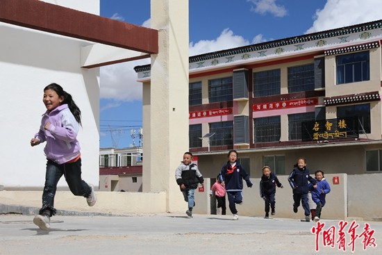9月14日,西藏那曲市班戈縣第二(中石化)小學(xué),學(xué)生們課間休息時(shí)在戶(hù)外玩耍。中青報(bào)·中青網(wǎng)記者 孔斯琪/攝