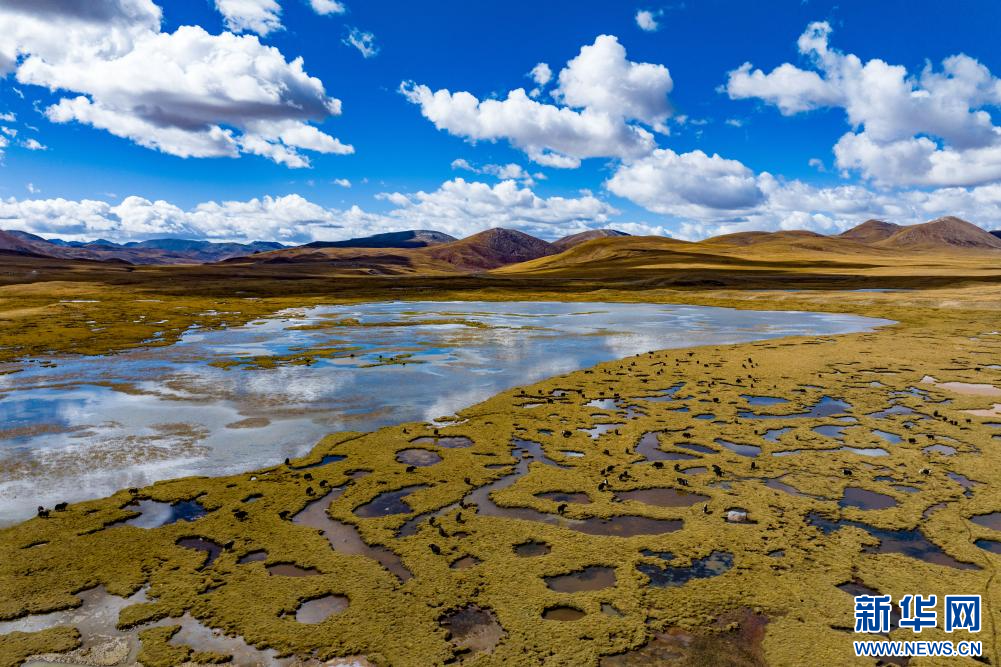 10月6日,在西藏自治區(qū)那曲市嘉黎縣境內(nèi)拍攝的牦牛(無人機(jī)照片)。新華網(wǎng) 旦增努布 攝
