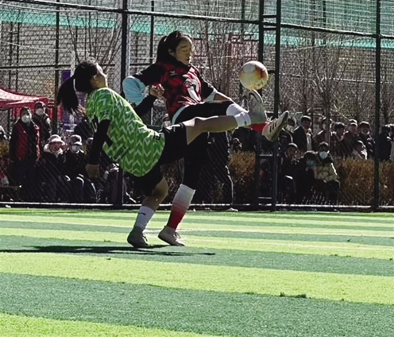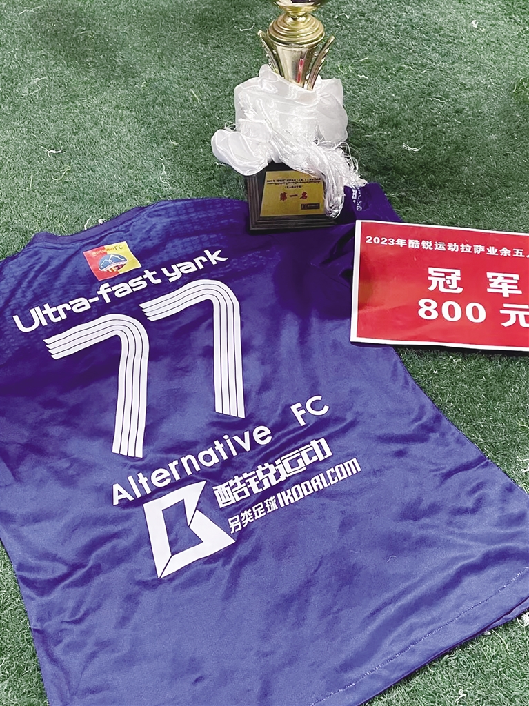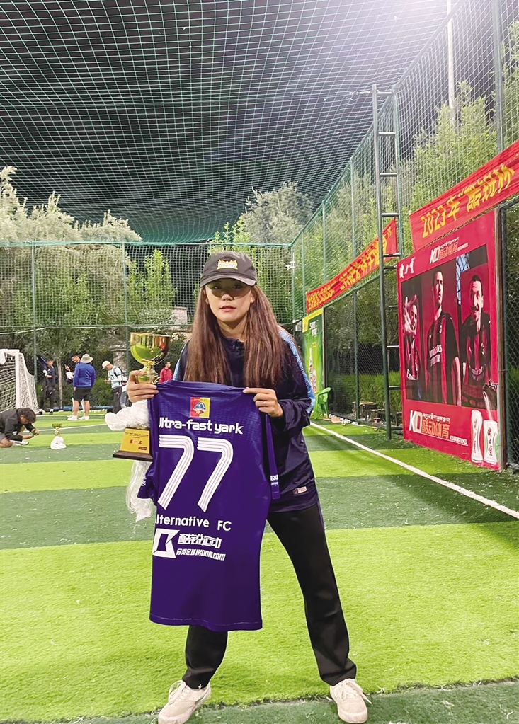 而最能證明她們訓練成果的就是足球聯(lián)賽?!?023年“迎新杯”酷銳運動拉薩業(yè)余足球5人制(女子組)比賽、第二屆“亞克杯”女子5人制交流賽在拉薩開賽,這也是西藏少有的女足賽事。米央以拉薩另類女子足球隊隊員身份參賽,盡管米央是隊內(nèi)年紀最小的成員,但她的能力絲毫不遜于任何人。米央所在的這支由高中生、大學生等組成的隊伍,經(jīng)過10場比賽,拼盡全力最終奪得冠軍。“每當足球在我腳下滾動飛躍,每當我奔跑在綠茵場上,那種肆意和快樂讓我堅定我的選擇,我的夢想是踢進中國國家女子足球隊。”米央說。雖然她與夢想還有距離,但內(nèi)心那股熊熊燃燒的信念力量,成為她刻苦訓練的“定心丸”。