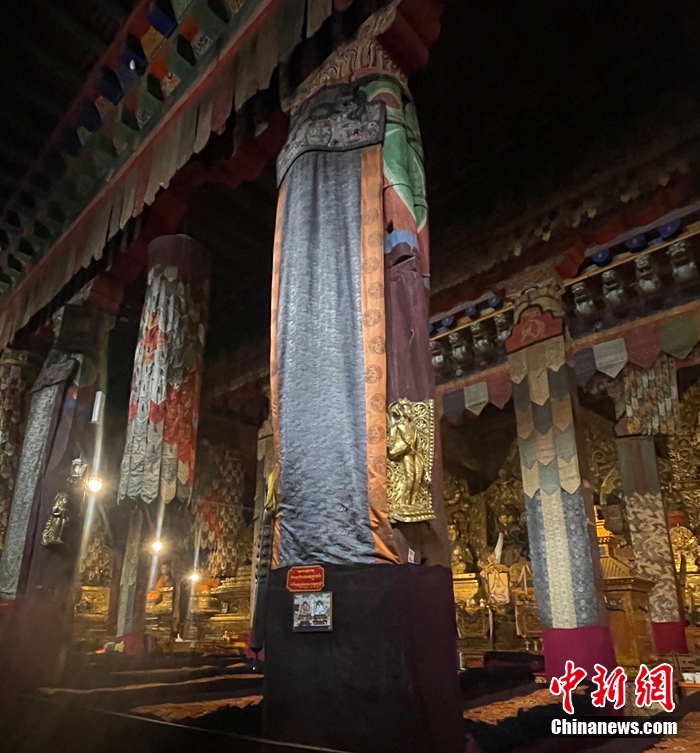 薩迦寺大殿內的“忽必烈皇帝柱”。薩迦寺供圖