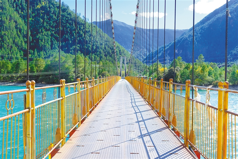 通往百巴松贊帳篷營地的百巴村章白吊橋,如今也成了旅游打卡地。記者 王珊 謝筱純 攝