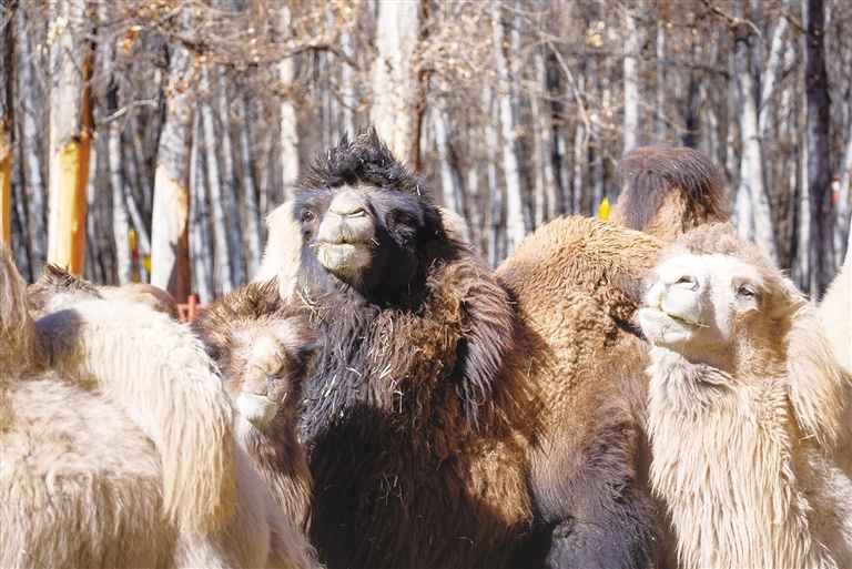 此外,記者了解到,曲水動物園在冬季還會加強動物的飼養(yǎng)管理,不僅會增加動物的喂食量,還會根據(jù)動物的身體狀況和天氣情況及時調(diào)整飼料配方。在駱駝區(qū),記者看到了來自動物島的兩只駱駝?!扒畡游飯@有10只駱駝,現(xiàn)在它們和動物島的兩只駱駝還不是很熟悉,所以目前是分籠飼養(yǎng)。在飲食上,我們也是格外注意,曲水動物園的10只駱駝每日按照草料50斤,精飼料和水果蔬菜20多斤的標準喂食。除此之外,動物島的兩只還會額外添加營養(yǎng)劑、喂的次數(shù)也會多一點?!边_次說。