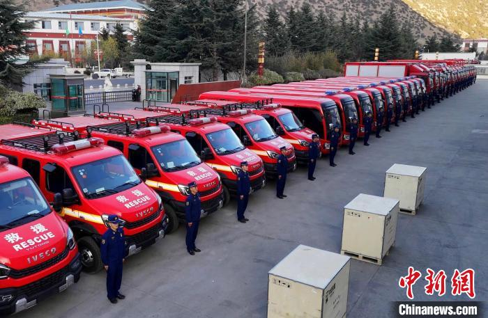 圖為林芝市森林消防支隊接收西藏森林消防總隊配發(fā)車輛及裝備。費賢浩 攝