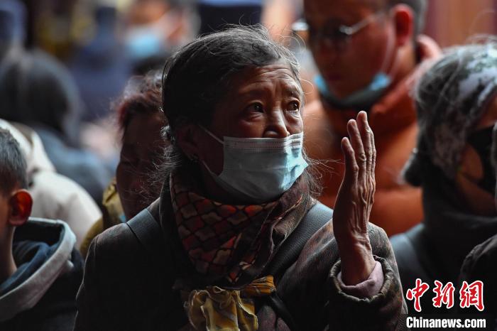 圖為12月15日,前來朝拜的信眾。中新社記者 貢確 攝