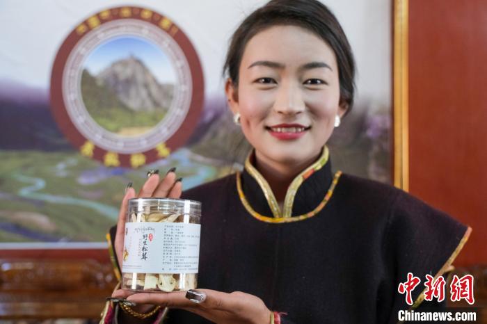圖為12月12日,朱拉松茸加工農(nóng)民專(zhuān)業(yè)合作社職工白瑪康珠展示合作社的松茸產(chǎn)品。記者 江飛波 攝