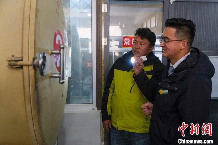 圖為12月12日,中國(guó)農(nóng)業(yè)銀行工布江達(dá)縣支行綜合部經(jīng)理王南(右)在合作社了解生產(chǎn)經(jīng)營(yíng)情況。記者 江飛波 攝